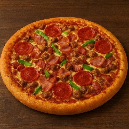 Marinara, Chicken, sausage, pepperoni, ham, salami, mozzarella.